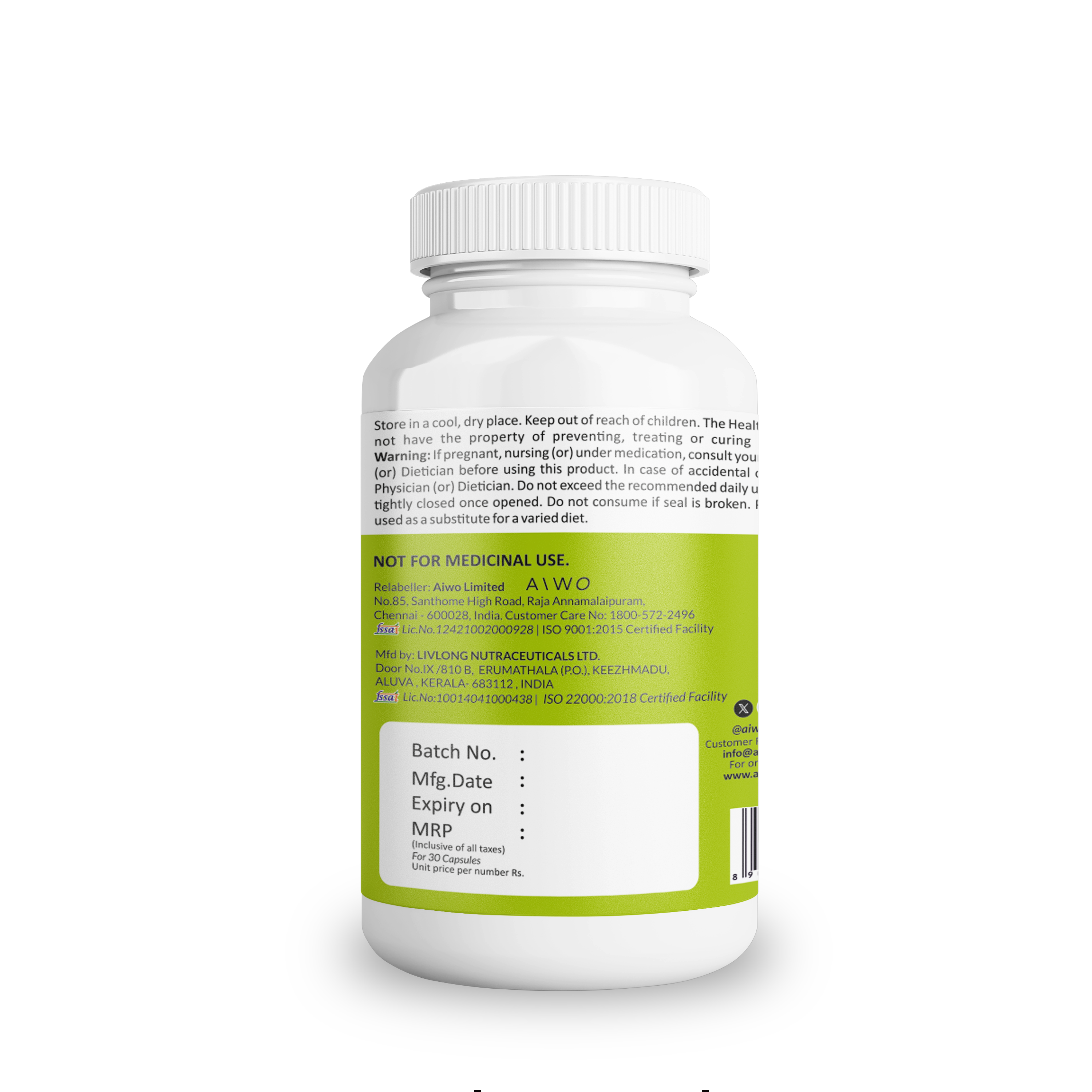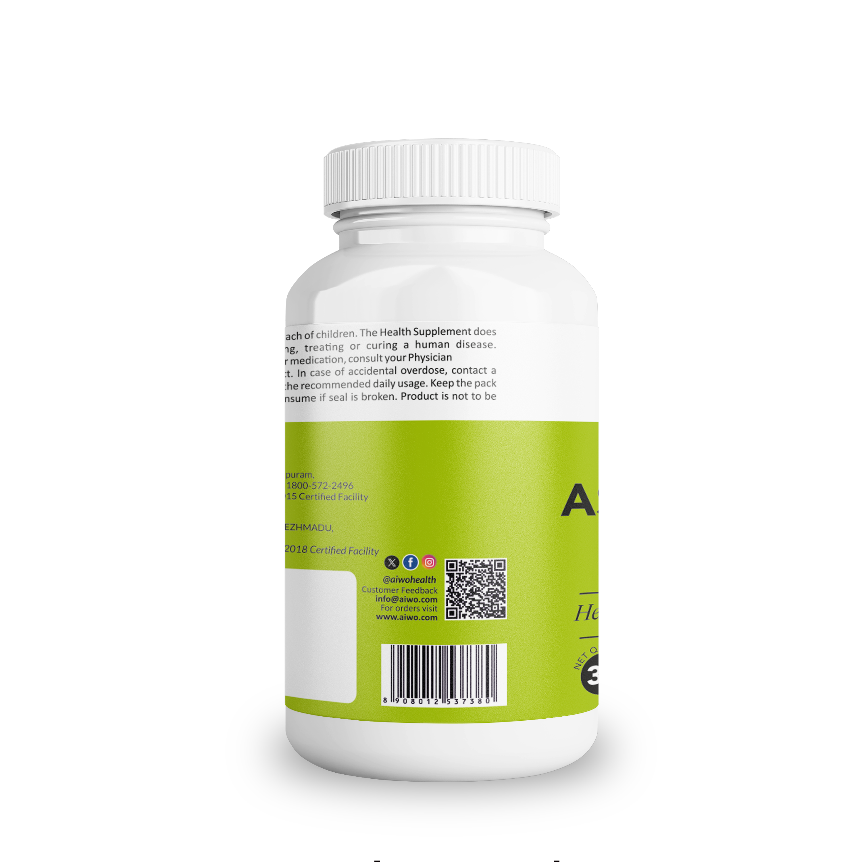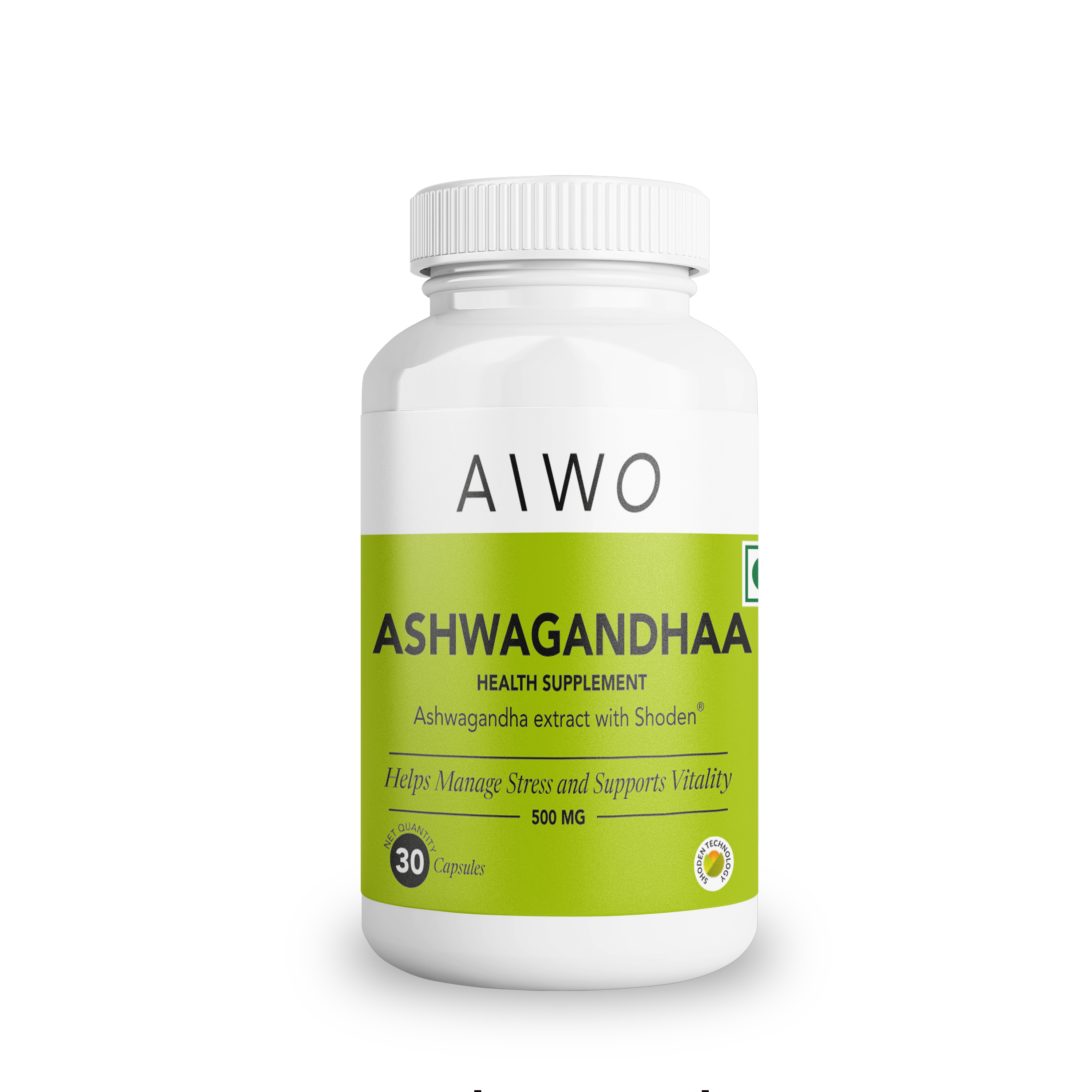 Aiwo ASHWAGANDHAA Shoden® BDS 500 mg delivers a clinically proven Ashwagandha extract standardized to 35% withanolide glycosides for superior bioavailability. Powered by Shoden® BDS technology and BIPS protection system, it ensures safe delivery of active compounds, supports stress management, energy, hormonal balance, and overall mental and physical wellbeing.
