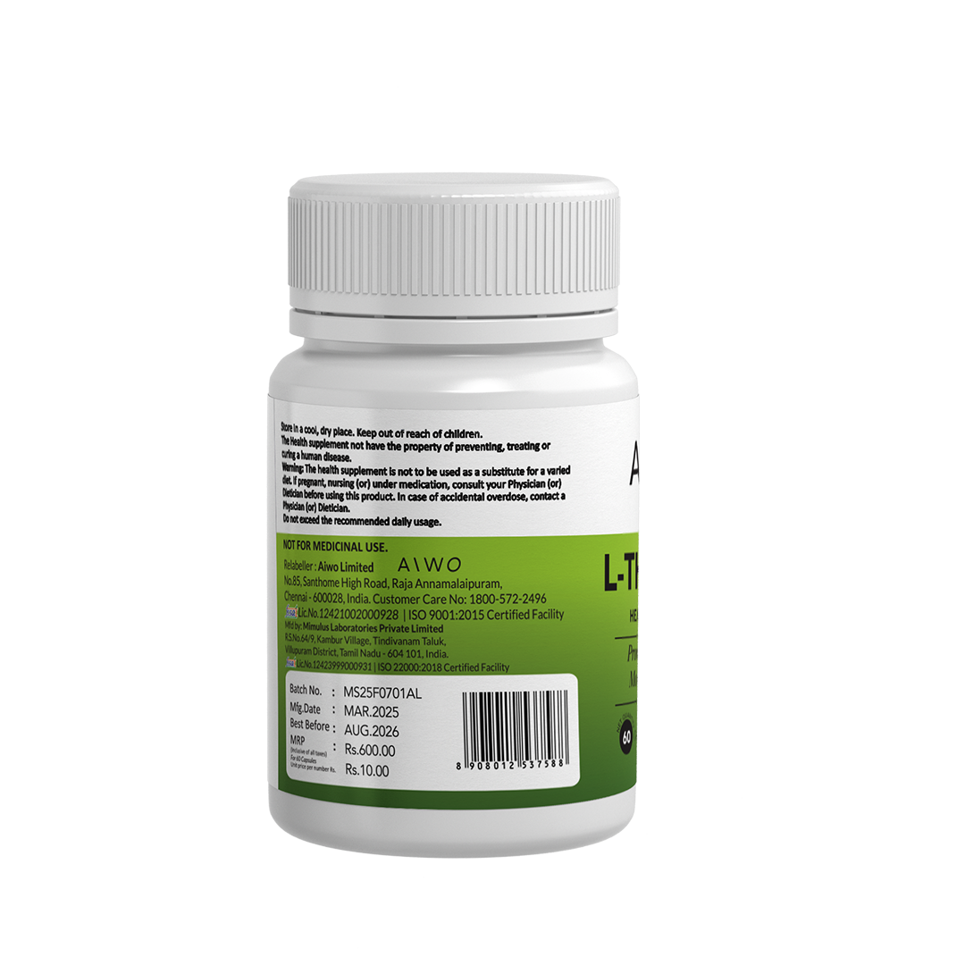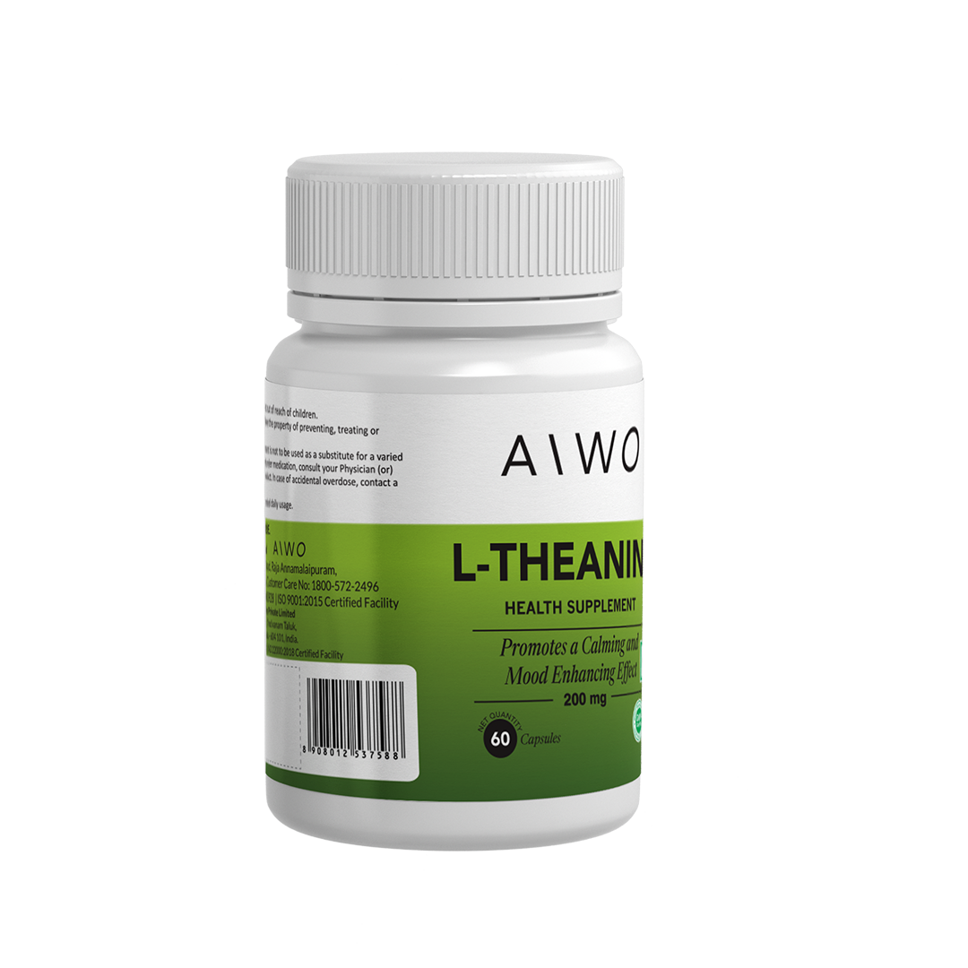 AIWO L-Theanine 200 mg promotes calm focus by enhancing alpha brain waves, helping reduce stress, improve concentration, support relaxation, and improve sleep quality.