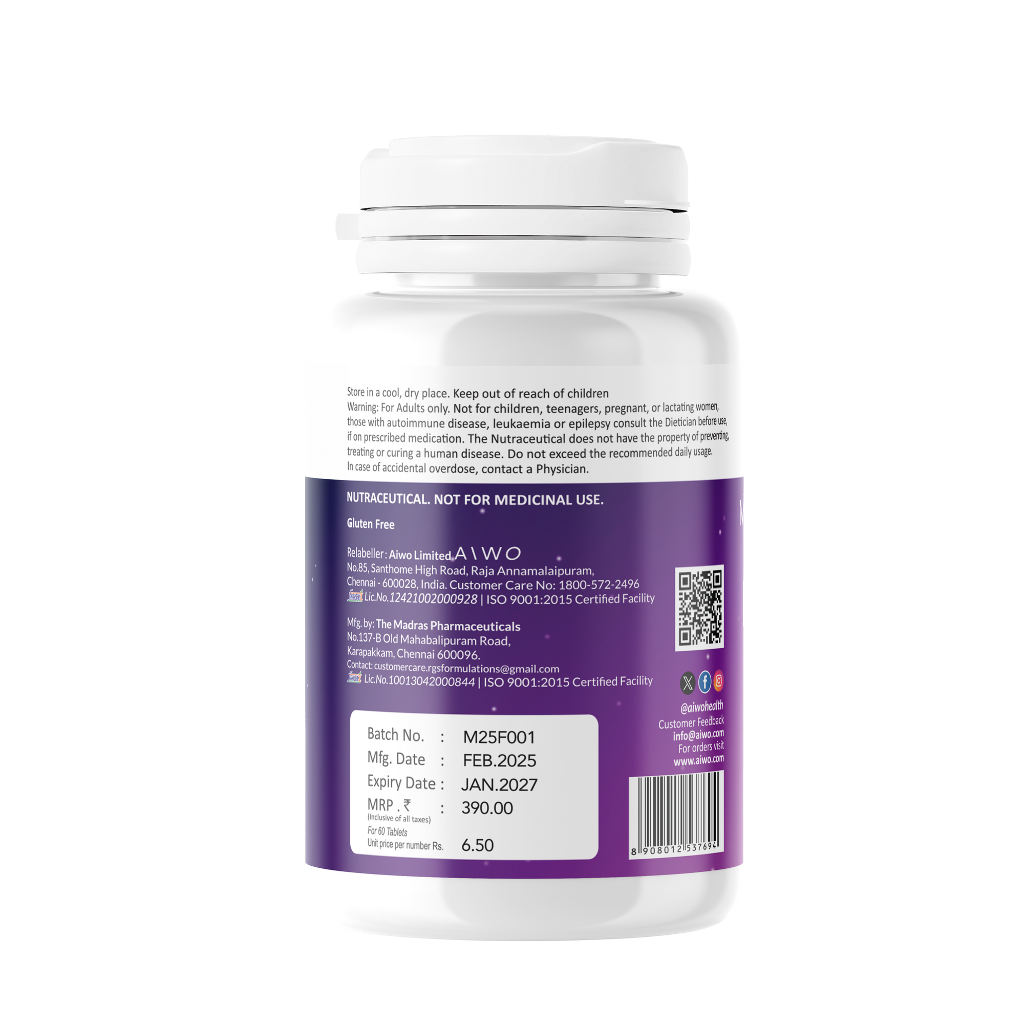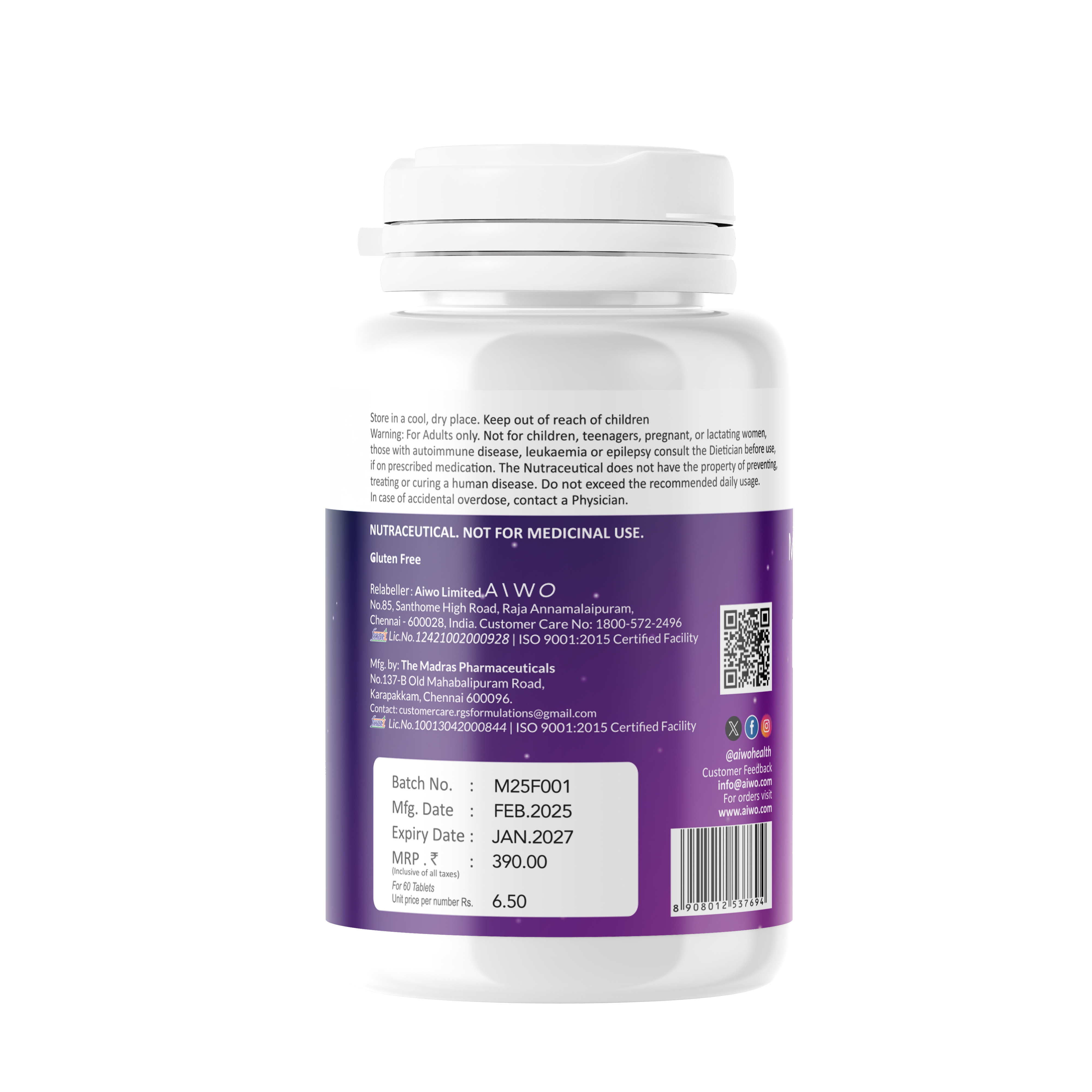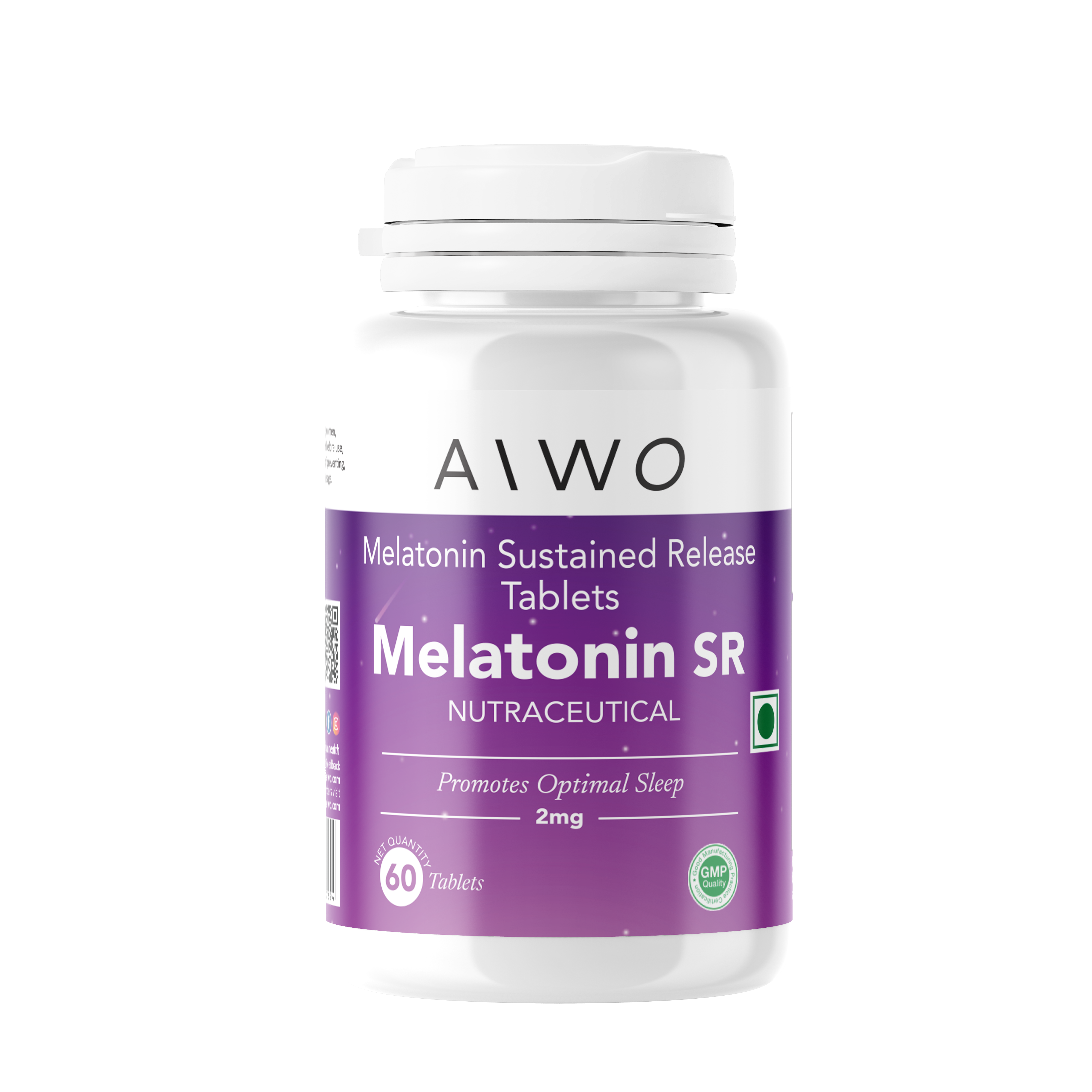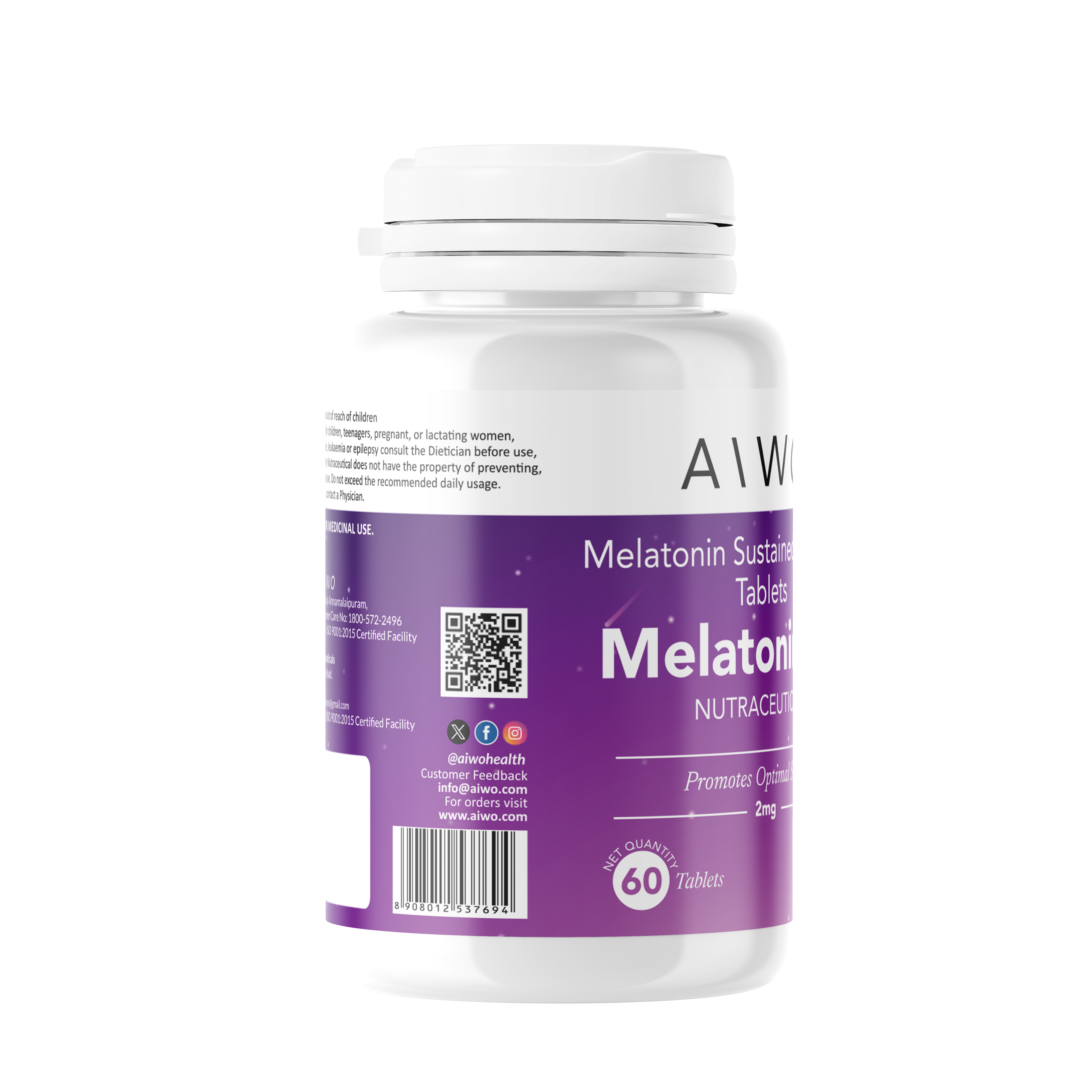 AIWO Melatonin SR 2 mg delivers sustained-release melatonin to support circadian rhythm balance, restful sleep, antioxidant defense, and overall night-time recovery.