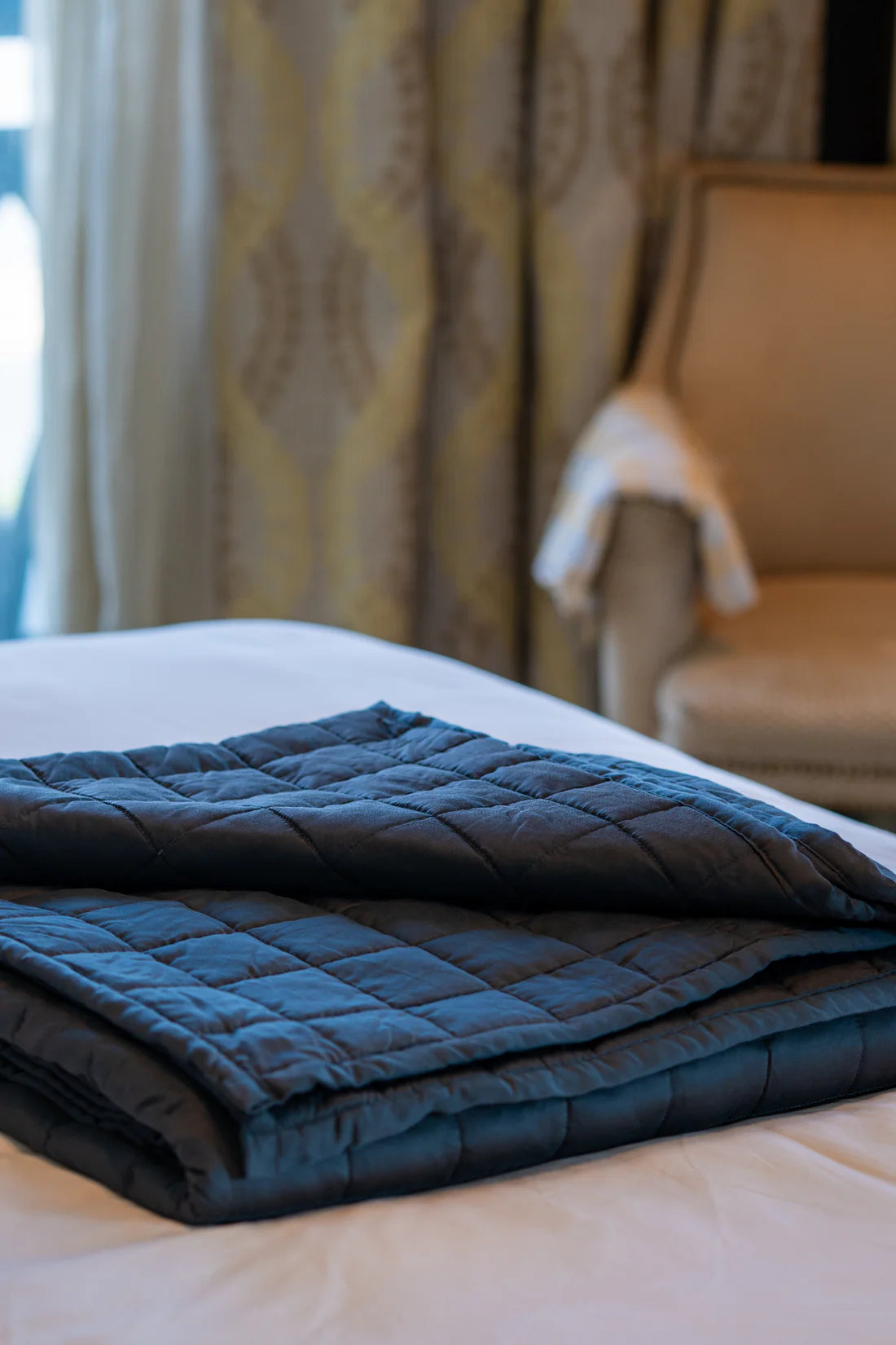 AIWO Weighted Blanket uses evenly distributed glass beads and breathable bamboo fabric to promote calmer nerves, deeper sleep, stress relief, and all-season comfort.