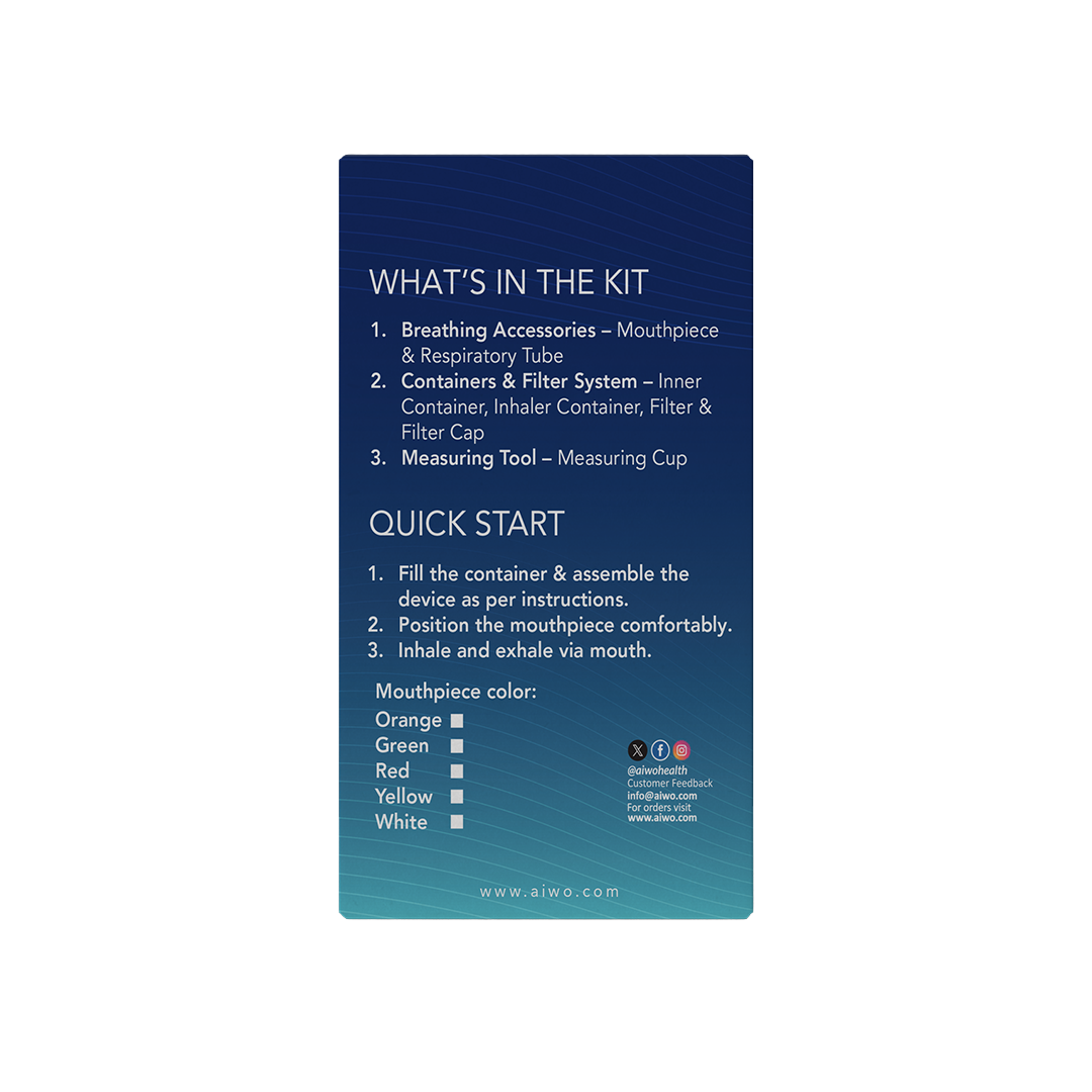 AIWO Breathe Easy is a Russian-designed breathing training device that improves lung capacity, strengthens respiratory muscles, and supports better breathing for all ages.